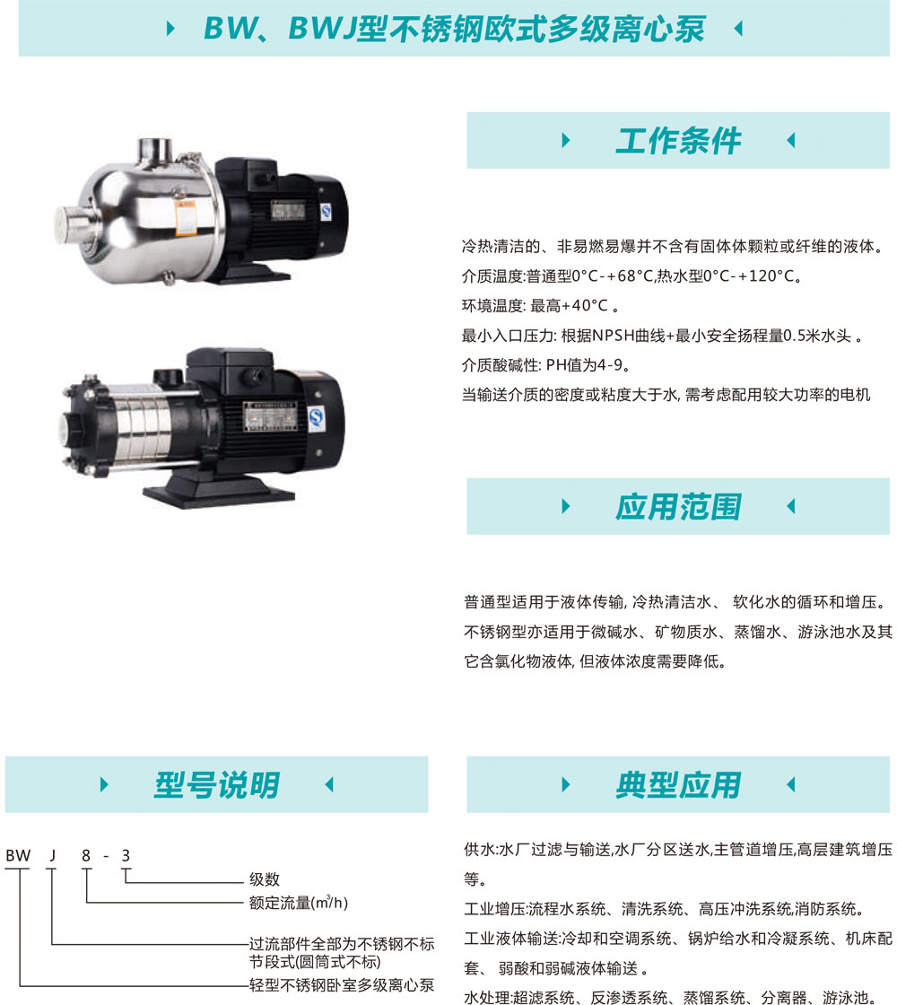 bw、bwj型不銹鋼歐式多級離心泵