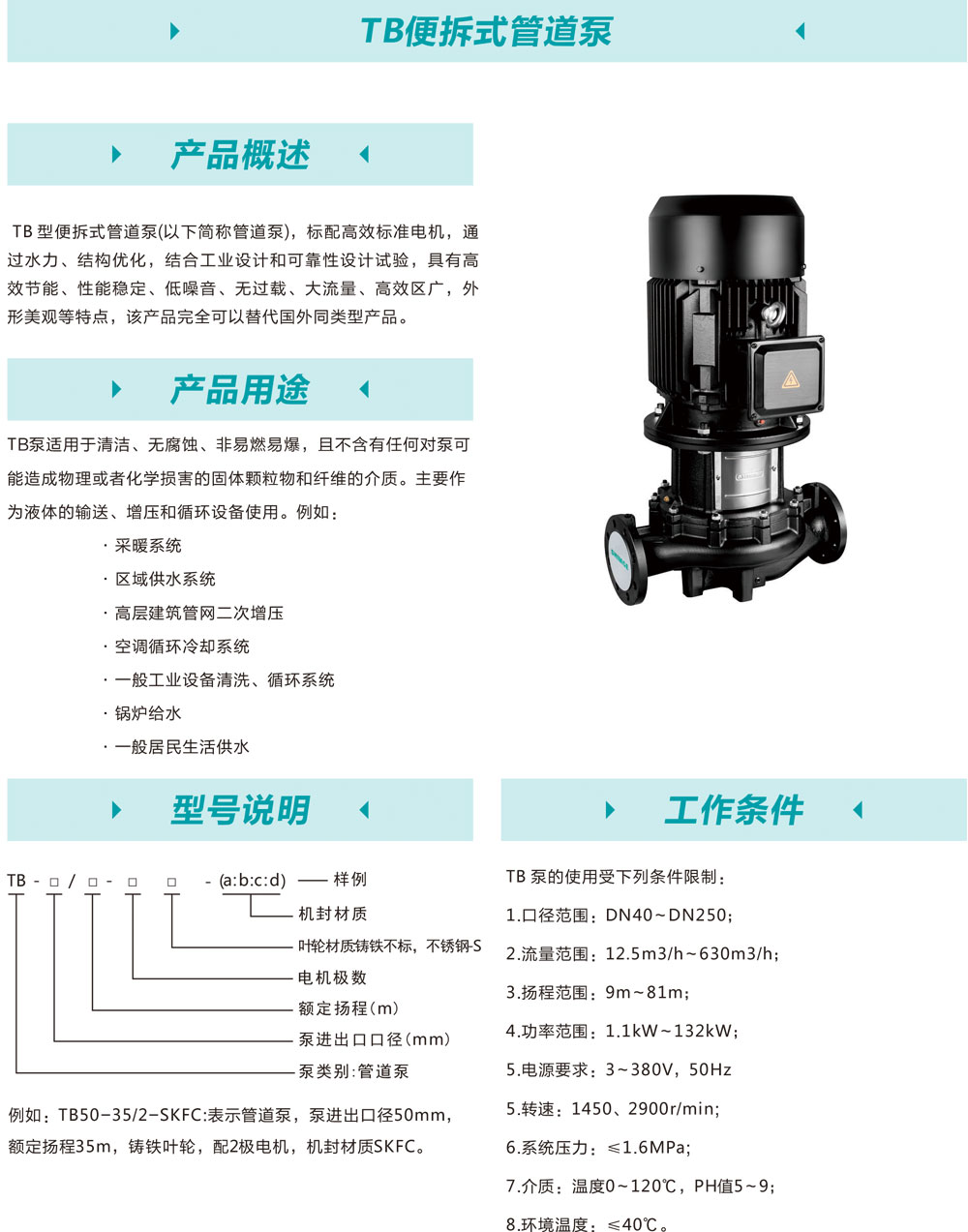 tb便拆式管道泵