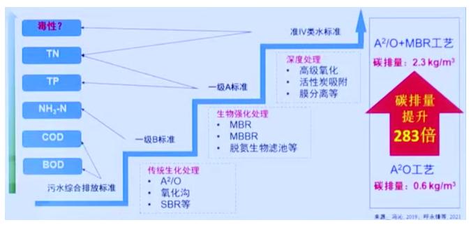 我國污水處理出水水質標準不斷提高,傳統工藝在實現達標排放的同時,往往帶來了更高的碳排放量,所以要實現低碳、零碳甚至負碳處理,需要對處理工藝進行重新梳理、評估和變革。