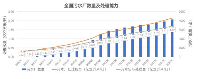 污水處理量:截至2019年底,全國城市和縣城污水處理廠共4140座,污水實際處理總量達到1.7億m3/d,污泥產(chǎn)量約6000萬噸/年(80%含水率)。