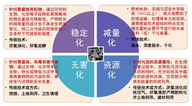 污泥處理處置原則:“安全環(huán)保、循環(huán)利用、節(jié)能降耗、因地制宜、穩(wěn)妥可靠”,最終實現(xiàn)減量化、穩(wěn)定化、無害化、資源化。