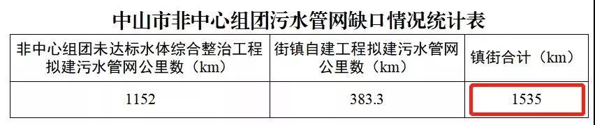 ▼截至2021年8月,中山市非中心組團污水管網缺口達到1535公里