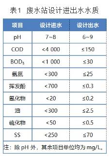 廢水站處理出水水質(zhì)需滿足《煉焦化學(xué)工業(yè)污染物排放標(biāo)準(zhǔn)》(gb 16171—2012)中的新建企業(yè)間接排放標(biāo)準(zhǔn)要求。設(shè)計進(jìn)出水水質(zhì)見表 1。